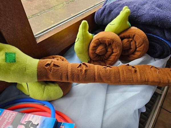 Diese Schnecke kann mit Leckerlis befüllt werden und ist zum Beschäftigen unserer Lieblinge bestens geeignet. Sie ist mit Klettband versehen, so daß Ihr Hund erst einmal überlegen muß, wie er am besten an die Leckereien heran kommt. Sehr beliebt ist dieses Schnüffeltierchen auch bei Welpen.